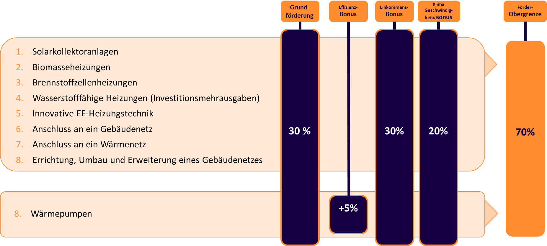 Die einzelnen Förderbausteine für den Heizungstausch sind wie folgt ausgestaltet: