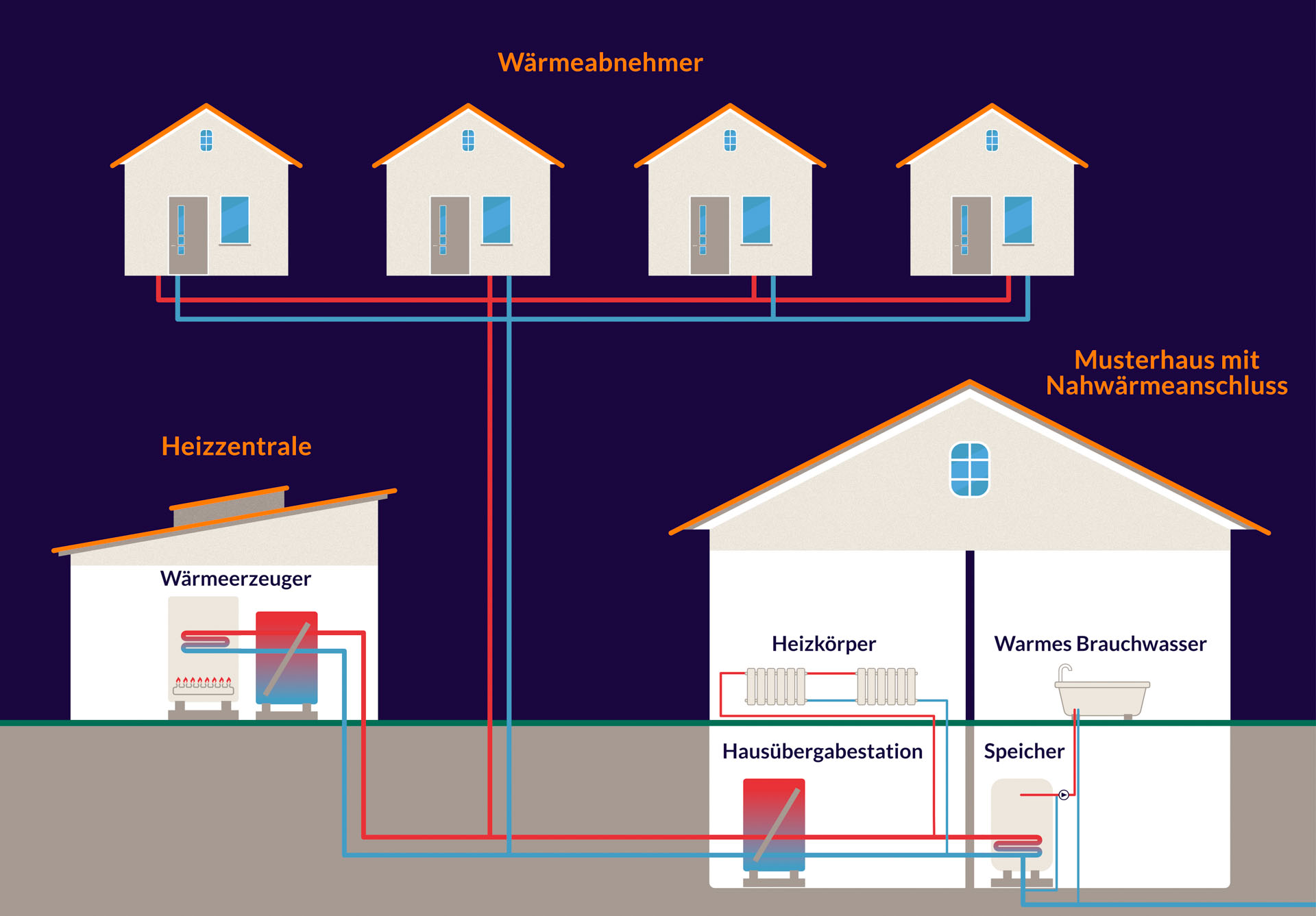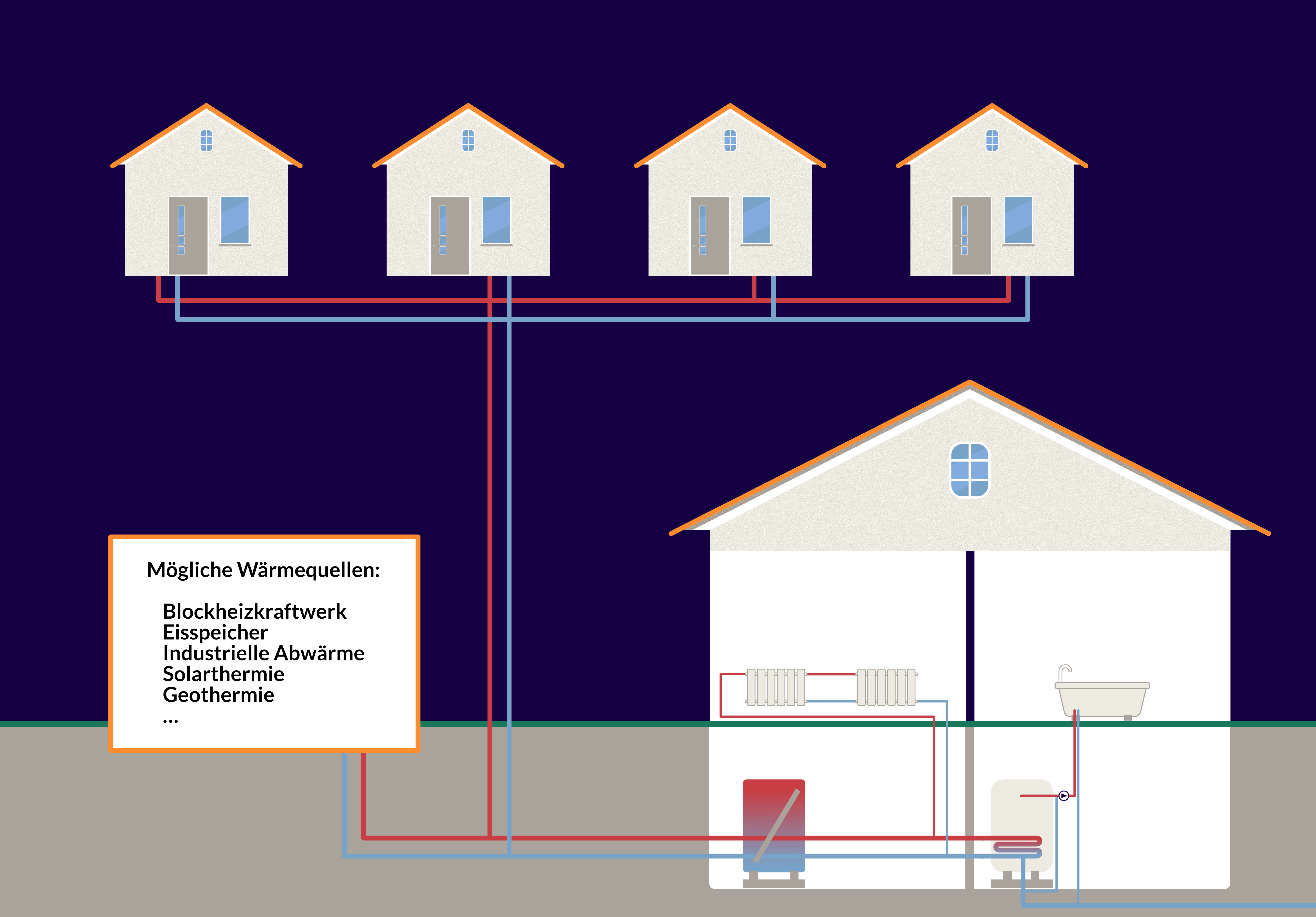 Wärmenetze sind Systeme, die Wärmeenergie von zentralen Quellen zu verschiedenen Verbrauchern transportieren. Gebäudeeigentümer können über den Anschluss an ein Wärmenetz über die sogenannte "Hausübergabestation" die notwendige Energie für Raumwärme und Warmwasser beziehen. In Abhängigkeit der Art der Wärmenetze – die sich hauptsächlich in ihrem Temperaturniveau unterscheiden – ist keine weitere Heizungsanlage mehr nötig.